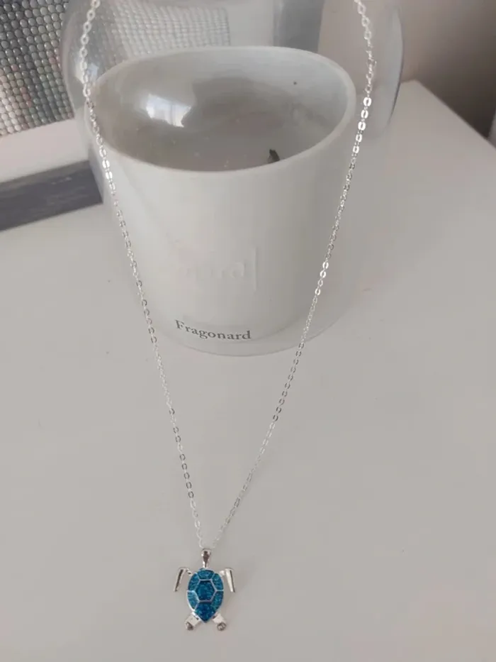 💥Pas d'envoi en Vinted Go 🎈Réduction sur lot Magnifique collier avec pendentif tortue bleue. Longueur chaîne 45 cm. Idéal pour offrir dans sa boîte cadeau. #anchik77bijoux #anchik77collier