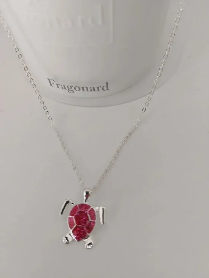 Magnifique collier pendentif tortue rouge