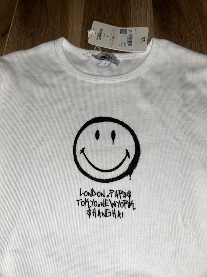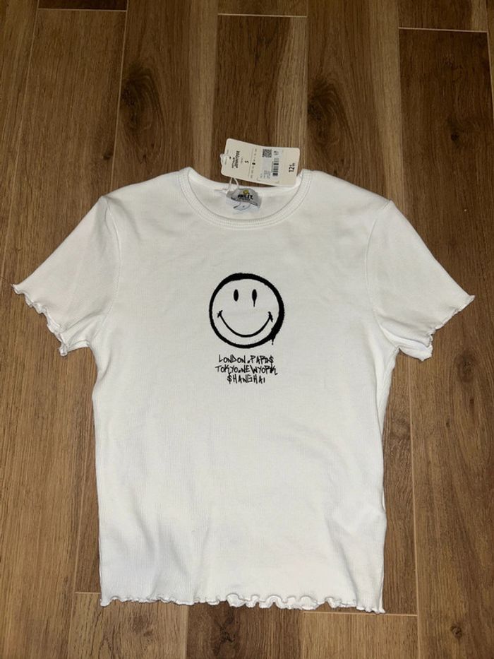 T-shirt blanc élastique à cotes fines :-) smiley Jennyfer, taille S #dekoijmemele_fille