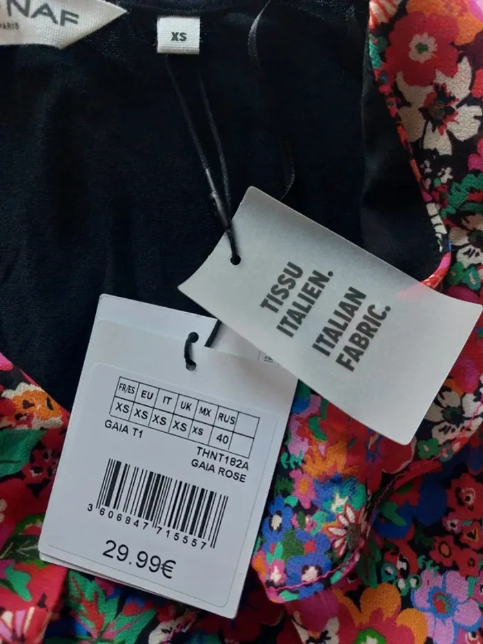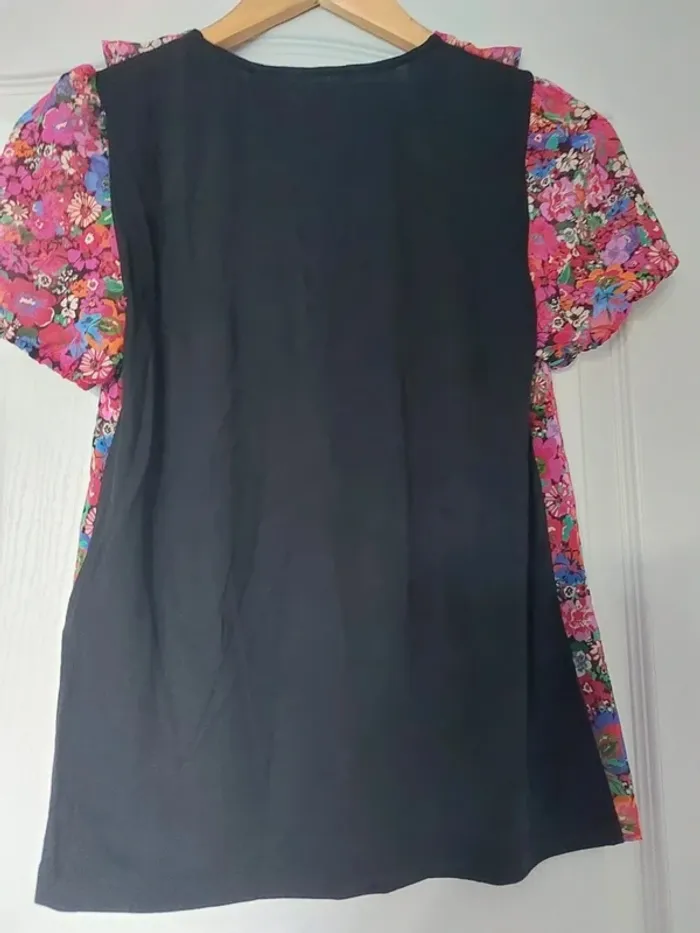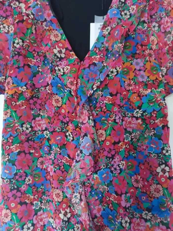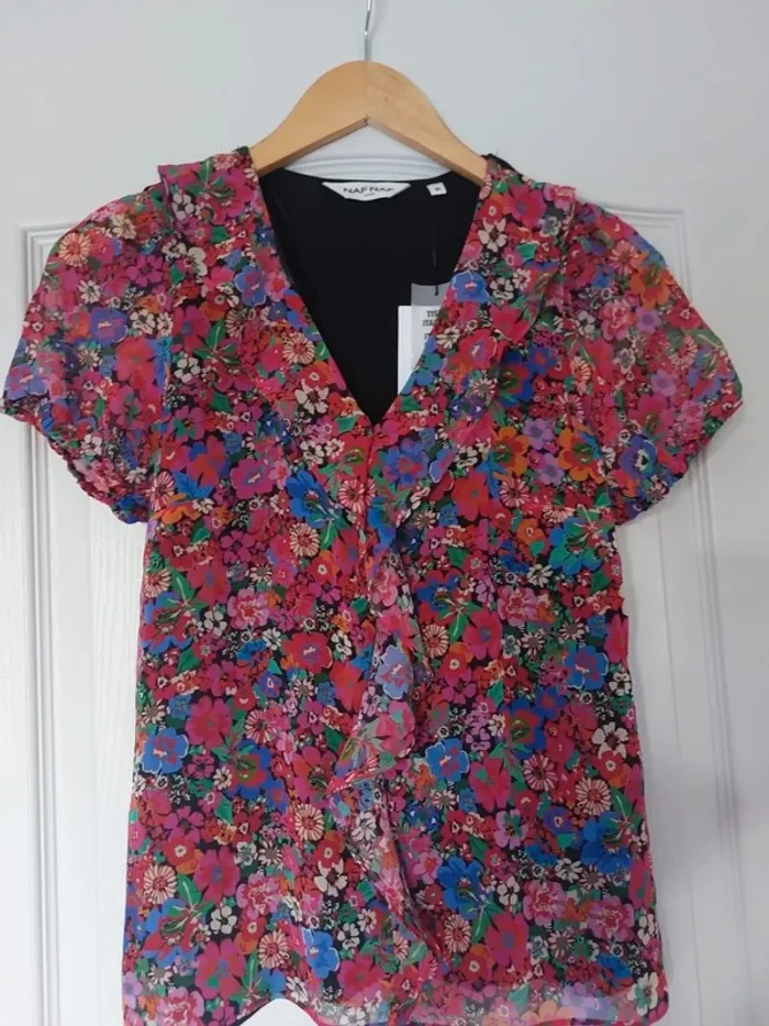 💥Pas d'envoi en Vinted Go Magnifique blouse multicouleur bimatiere avec col V à volant. Taille XS marque Naf Naf #anchik77femme