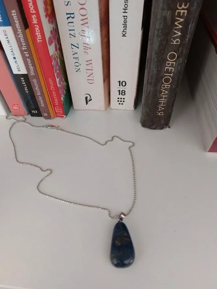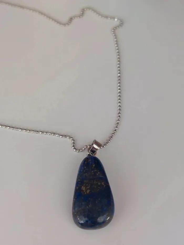 Collier pendentif pierre naturelle bleu, je pense que c'est du lapis-lazuli, taille de la pierre 2.5 cm. Longueur du collier (pas en argent) 40 cm. #anchik77bijoux