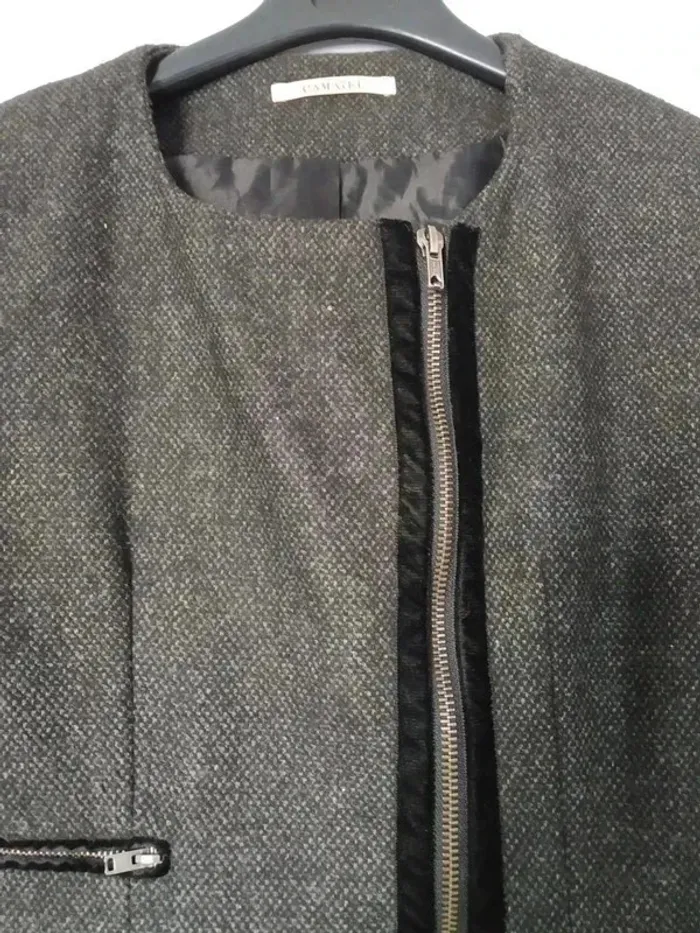 💥Pas d'envoi en Vinted Go Veste tweed grise taille 38 marque Camaïeu. Fermeture zip asymétrique. 2 vraies poches et 1 poche déco devant. #anchik77femme38 #anchik77femme