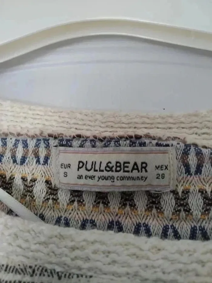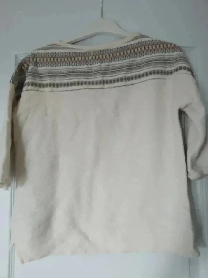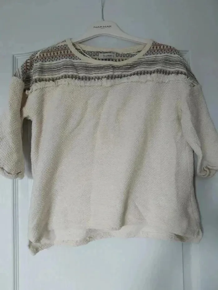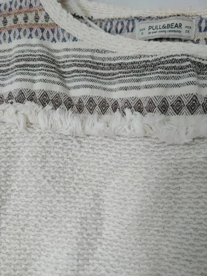 Pull léger manches 3/4 motif ethnique, taille S, marque Pull &Bear #anchik77femme36 #anchik77femme