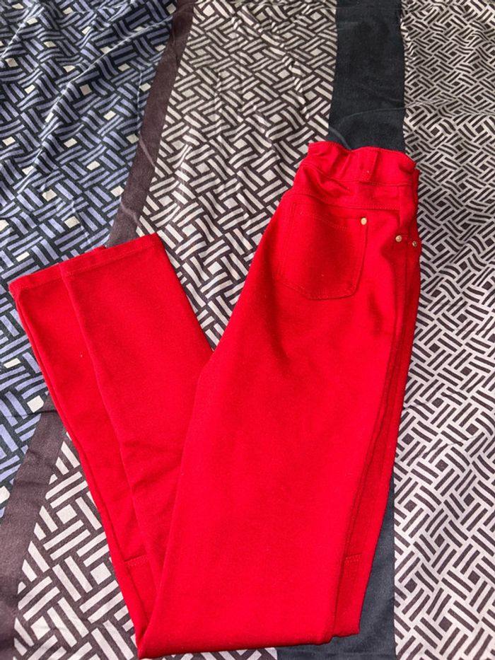 Pantalon élastique type jegging 12 ans Rouge bordeaux moins vif que sur la photo Quelques défauts (Des petites bouloches et un accroc jambe droite cf photo)