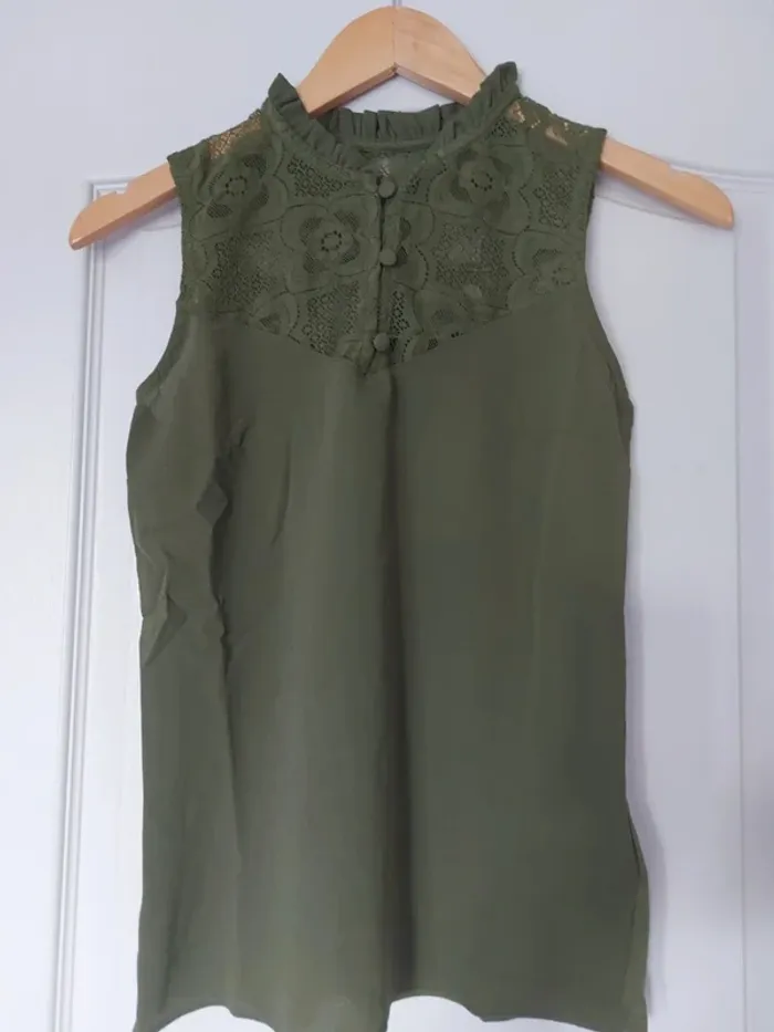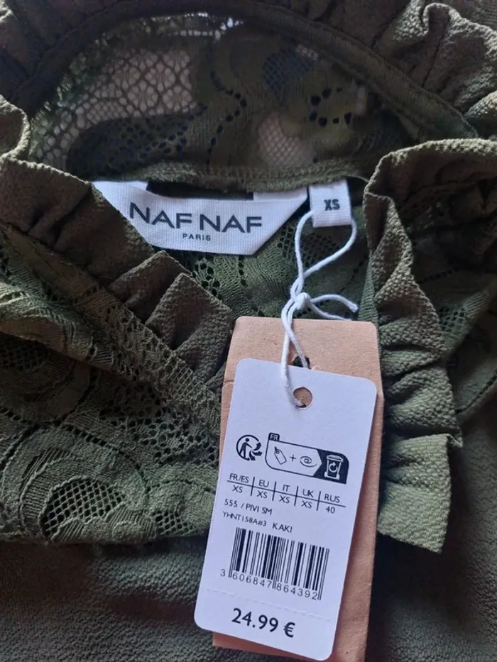 💥Pas d'envoi en Vinted Go Magnifique haut en dentelle couleur kaki taille XS, marque Naf Naf. #anchik77femme