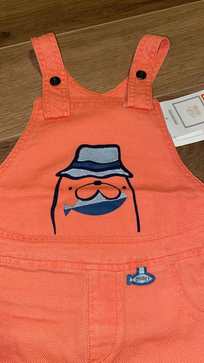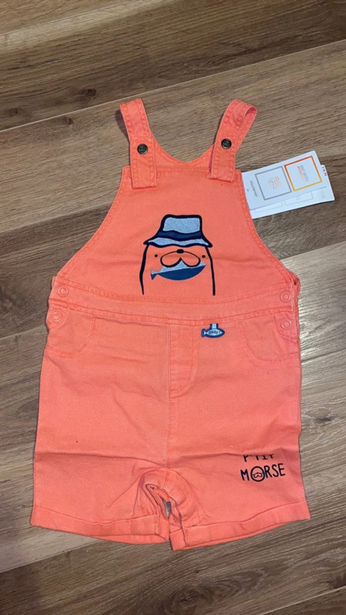 très jolie salopette short corail morse orchestra 18 mois neuve