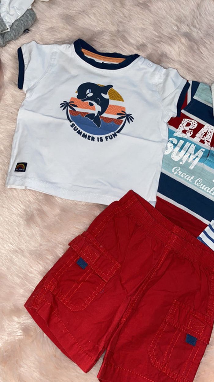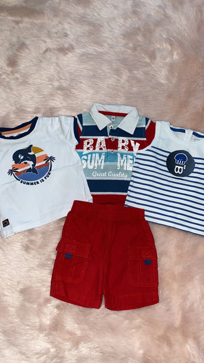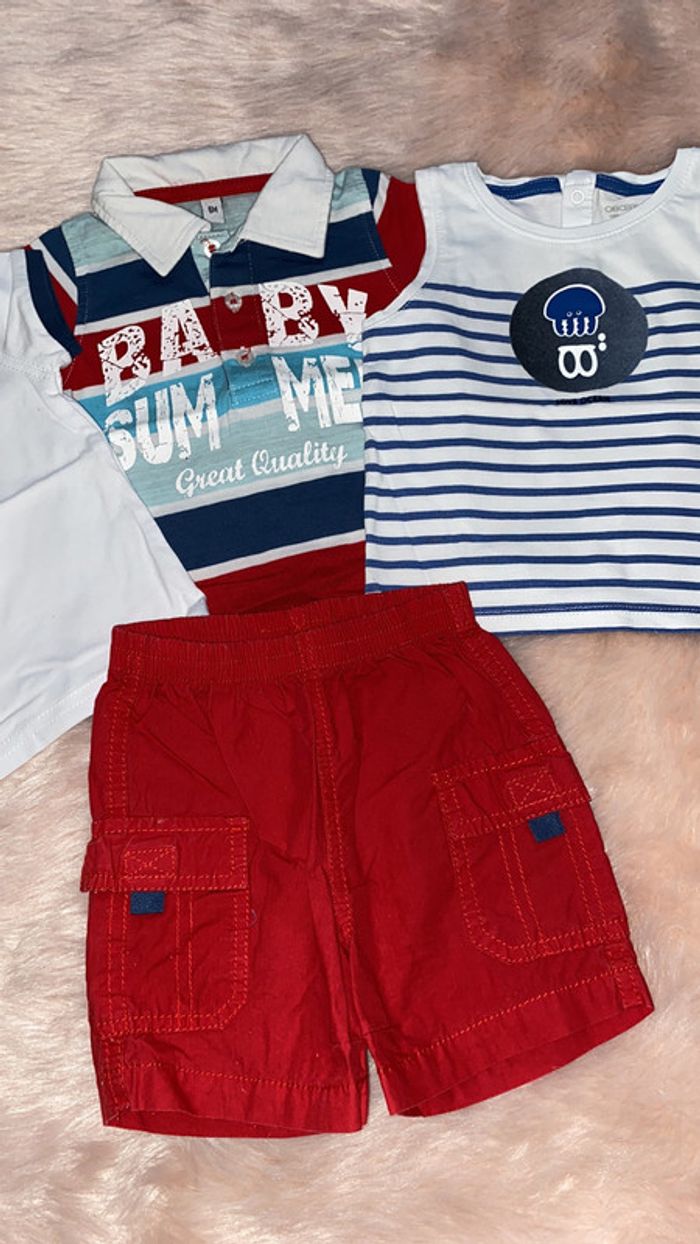 ensemble 1 t-shirt Gemo 1 polo 1 débardeur obaibi 1 short 6 mois très bon état