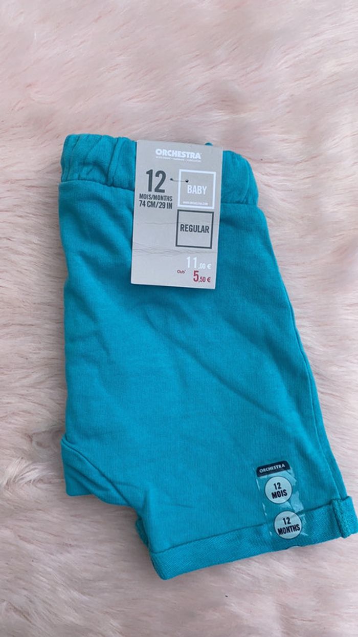 short avec poche ventrale mollet ton éponge bouclette orchestra 12 mois neuf