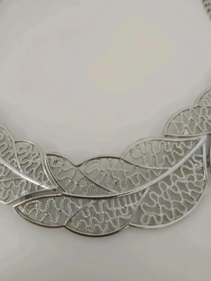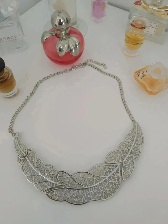 💥Pas d'envoi en Vinted Go Collier plastron avec détail feuille très léger. Longueur réglable 46-51 cm. Couleur argenté, pas en argent. #anchik77bijoux