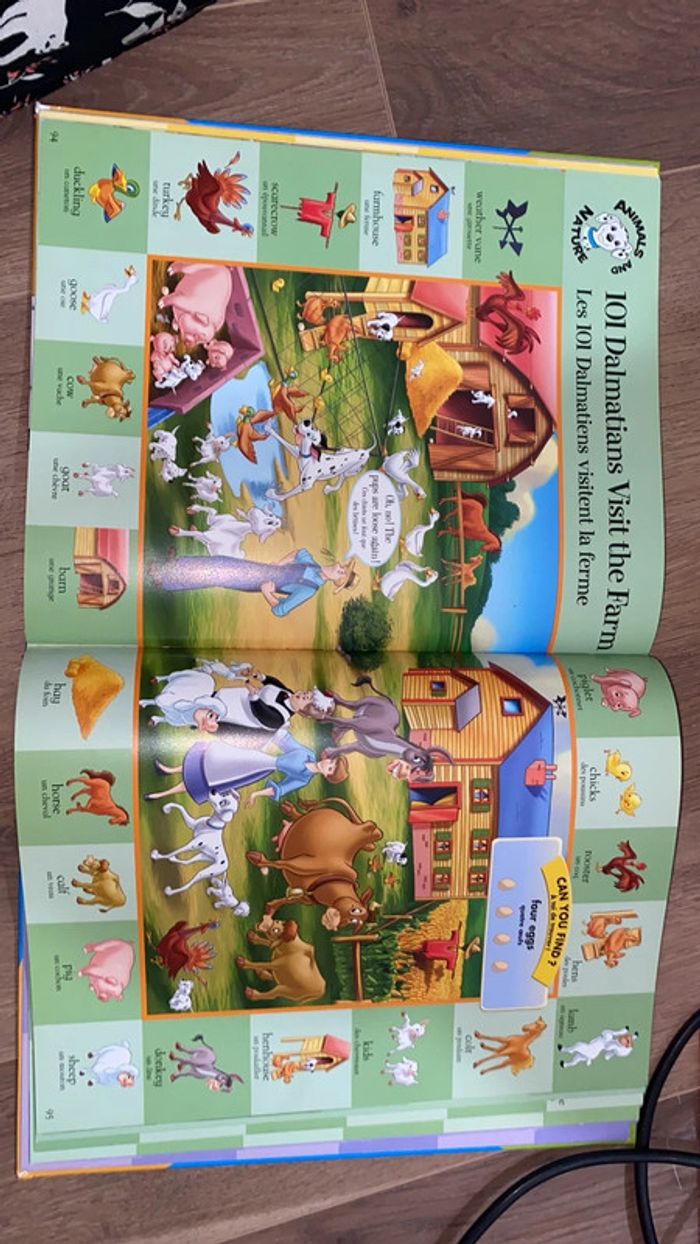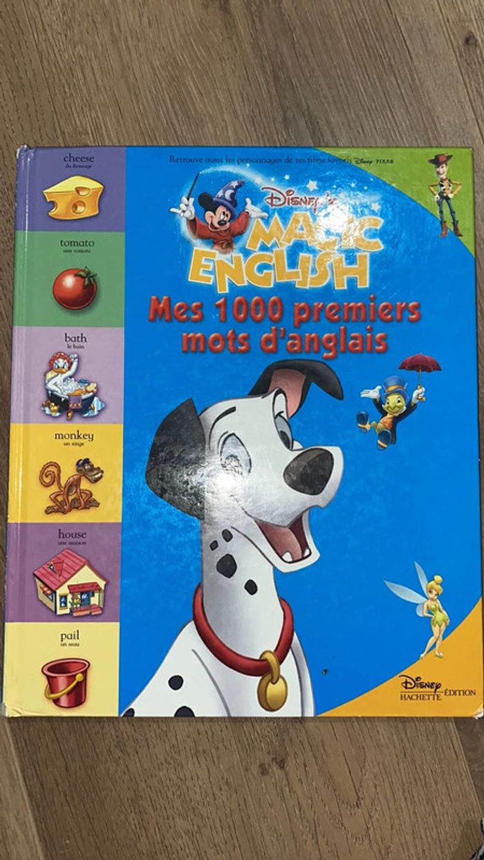 Un imagier bilingue riche de 1000 mots qui permet aux plus jeunes d'avoir une première approche de l'anglais grâce à une mise en page ludique et très colorée. magic english Disney dalmatien pongo couverture abîmé cf photo
