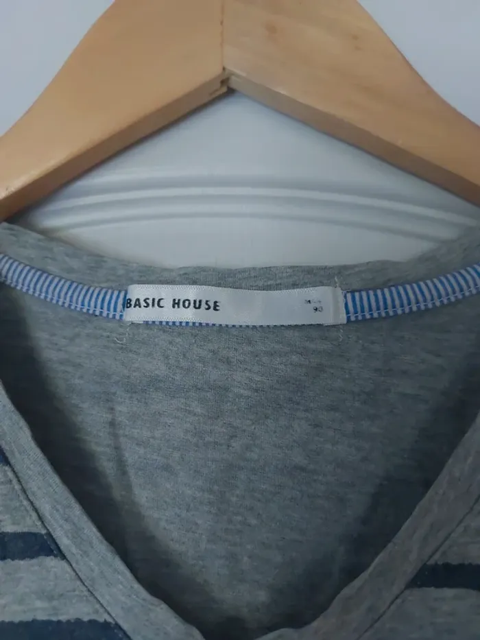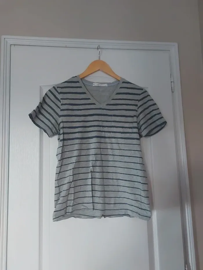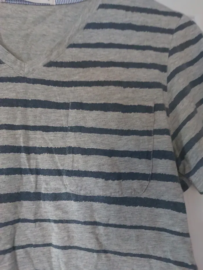 Tee-shirt rayé couleur grise taille S. Col en V, une petite poche devant. #anchik77homme