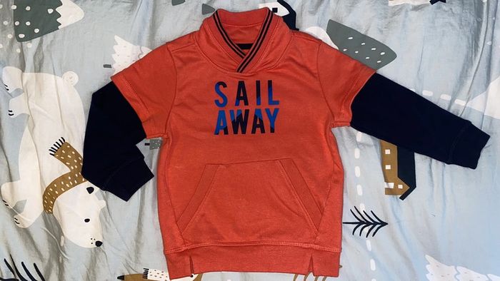 Sweat orange bleu marine fausse manche courte Sail Away 4 ans Neuf Jamais utilisé juste lavé #dekoijmemele_garçon