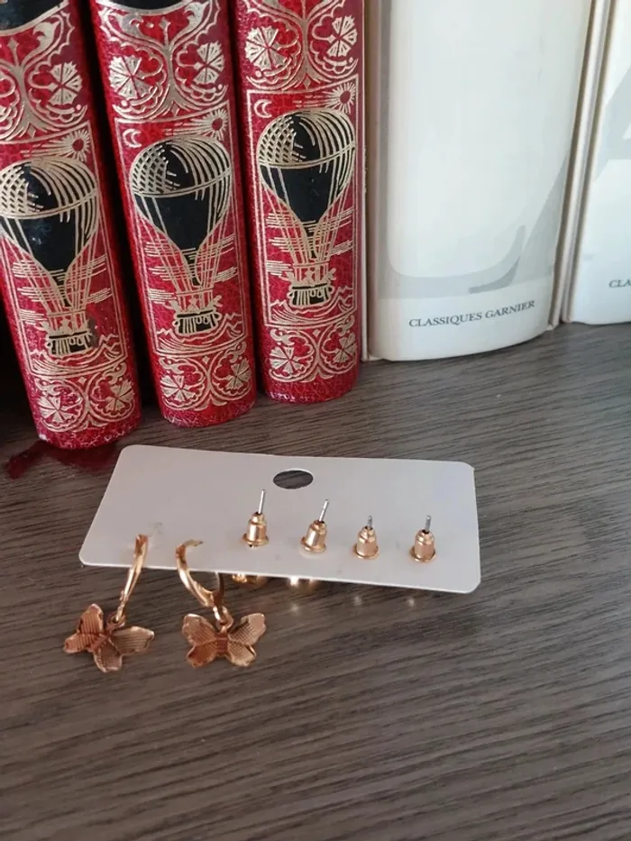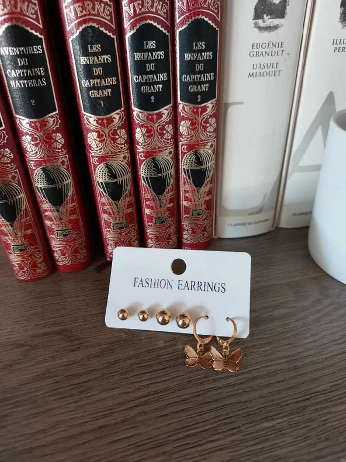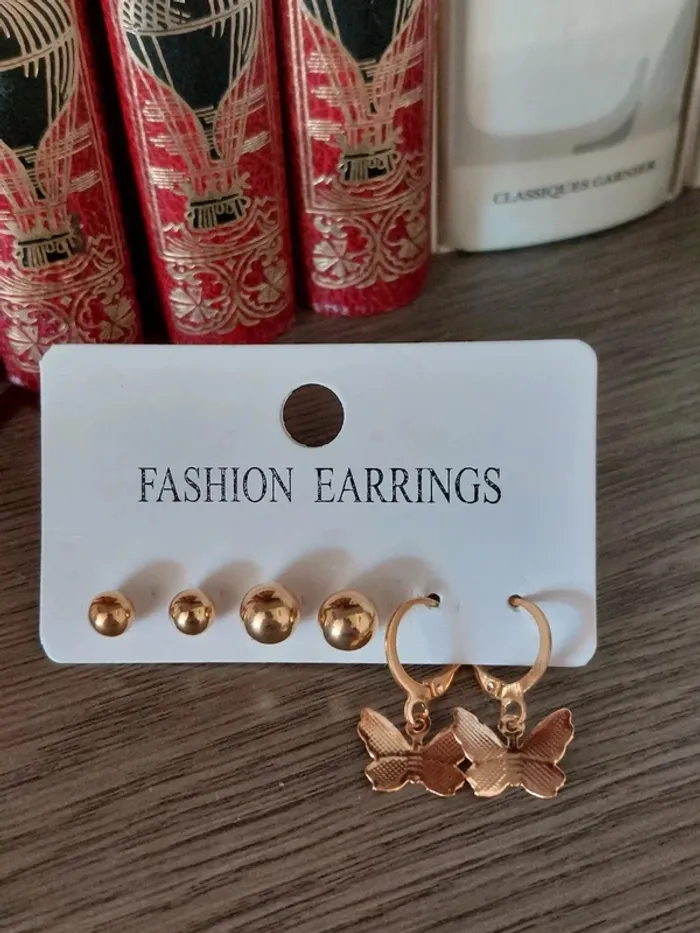 Boucles d'oreilles fantaisie dorées forme de boule et une paire avec papillon. #anchik77bijoux