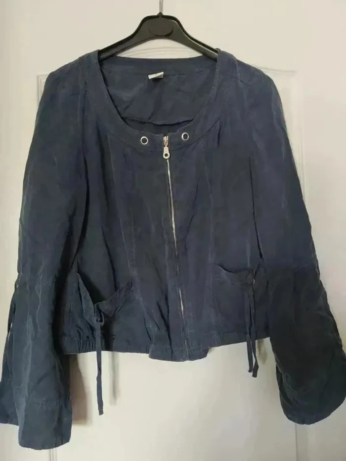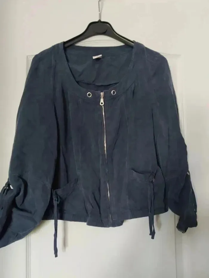 💥Pas d'envoi en Vinted Go Veste légère et fluide avec les lacets aux niveaux des manches. Peut être porté retroussé légèrement ou pas 😉. Couleur bleue avec un effet satiné. Taille 38, marque Jacqueline Riu. #anchik77femme38 #anchik77femme