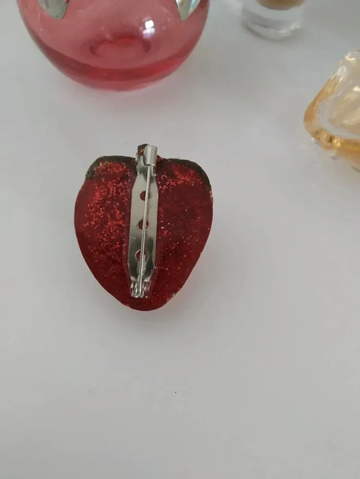 Broche en époxy forme fraise. Taille 3 cm, résine époxy avec paillettes. Modèle unique #anchik77bijoux