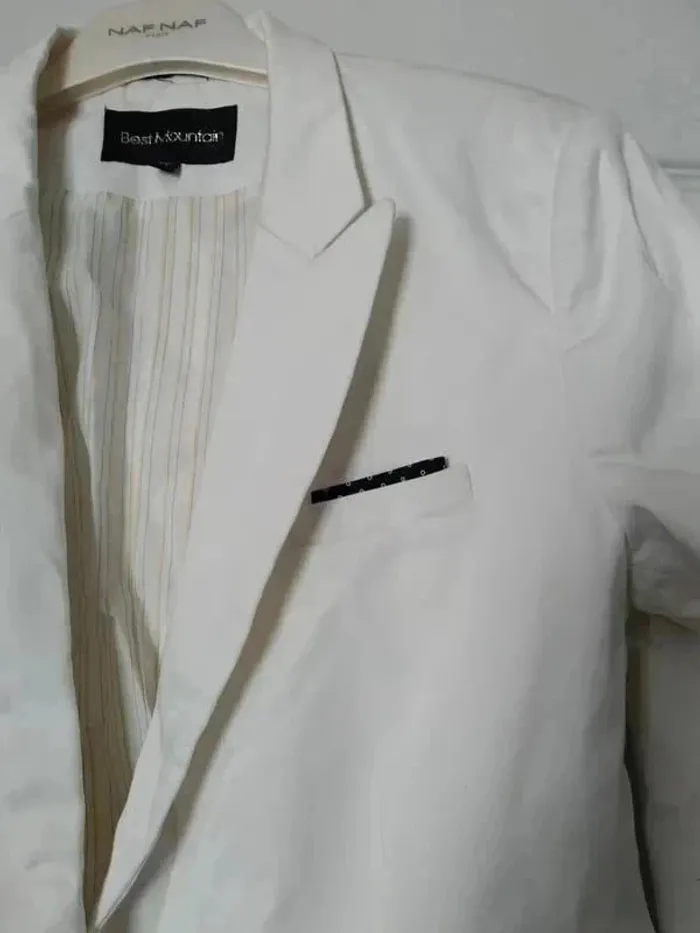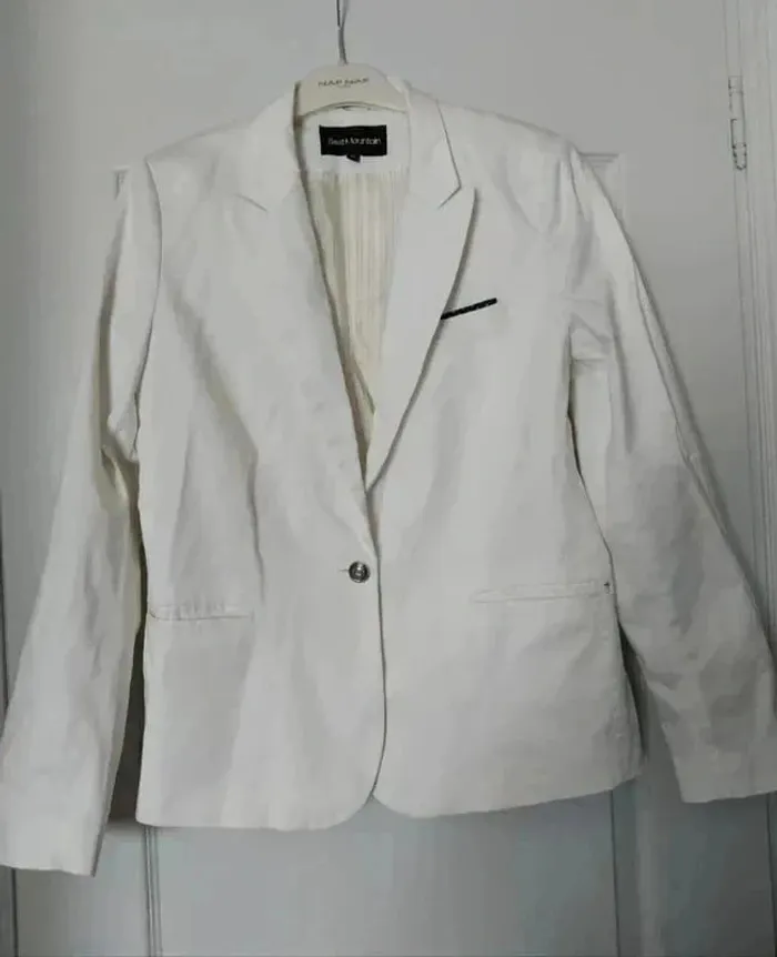 Blazer blanc modèle cintré, taille 42. Marque Best Mountain. Une petite trace sur le haut de la poche (visible sur dernière photo). #anchik77femme #anchik77femme42