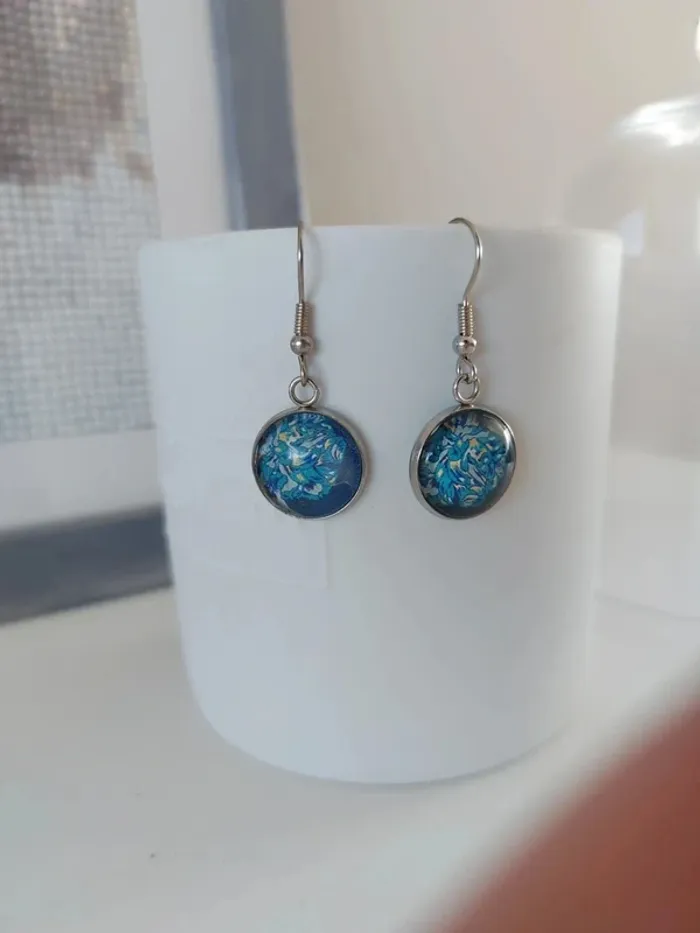 💥Pas d'envoi en Vinted Go Boucles d'oreilles fantaisie fleurs bleues sous cabochon. #anchik77bijoux
