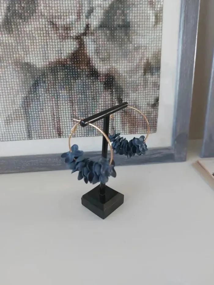 💥Pas d'envoi en Vinted Go Boucles d'oreilles créoles avec fleurs en tissu couleur bleu. Diamètre 4 cm. #anchik77bijoux