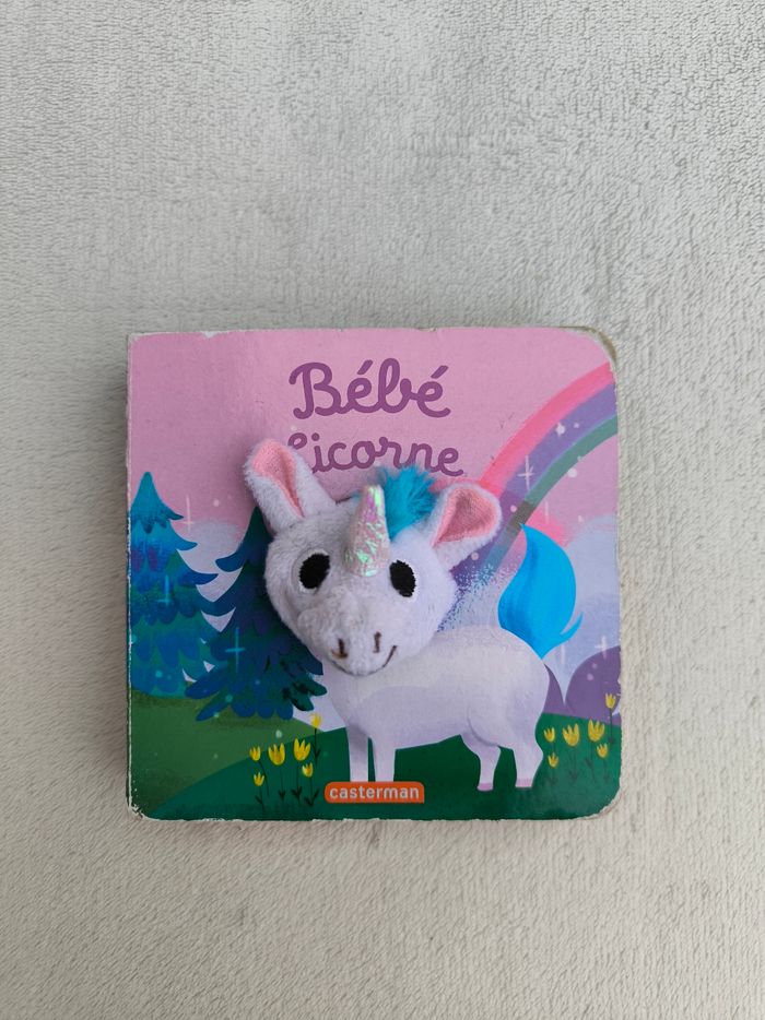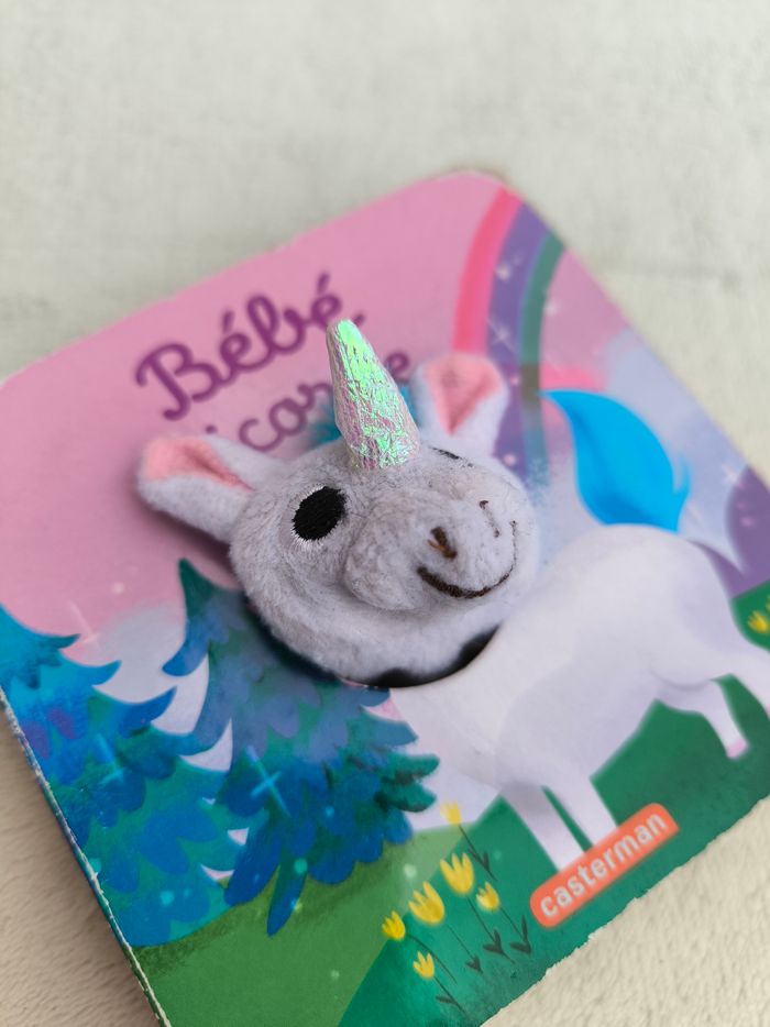 Livre marionnette Bébé Licorne Éditions Casterman • Pages cartonnées • Licorne douce • Coins et arêtes abîmés • Marionnette tachée ⚠️ D'autres livres de la même collection disponibles En état satisfaisant #evelyne_livres