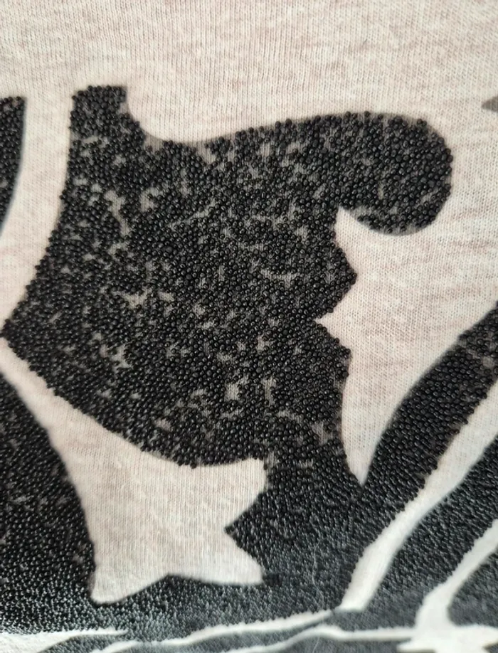 Tee-shirt zara Beige motif noir Le motif est réalisé avec des mini perles noires Taille 38 En très bon état #virginie2220femme38