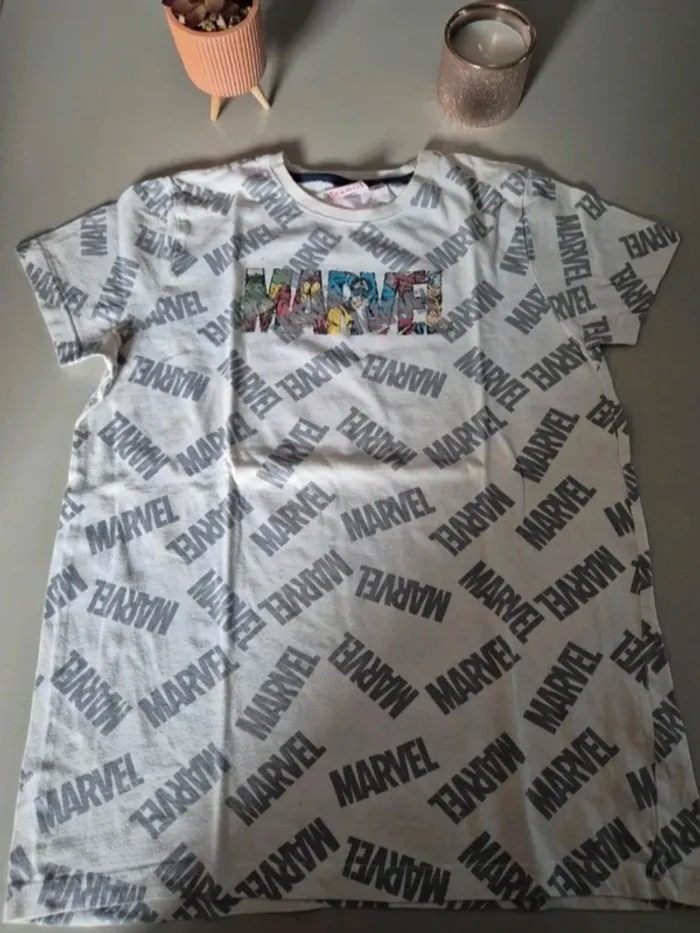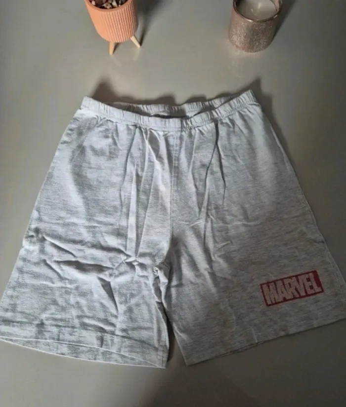 Pyjama short Marvel Short gris clair et tee-shirt blanc imprimé gris 11/12 ans En très bon état (legere usure du logo) #virginie222011ansgarcon #virginie222012ansgarcon