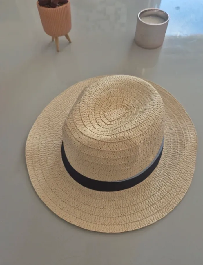 Chic et léger, ce chapeau de paille crème avec son liseré bleu marine est l’accessoire parfait pour l’été ☀️ Style mixte – il ira aussi bien aux hommes qu’aux femmes ! Jamais porté – état NEUF 🔥 Idéal pour la plage, une balade en ville ou un brunch en terrasse 😎 📏 Taille standard adulte 🎁 Parfait aussi pour offrir ! #virginie2220homme #virginie2220divers #virginie2220femme38
