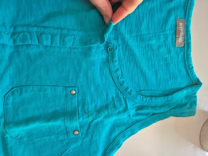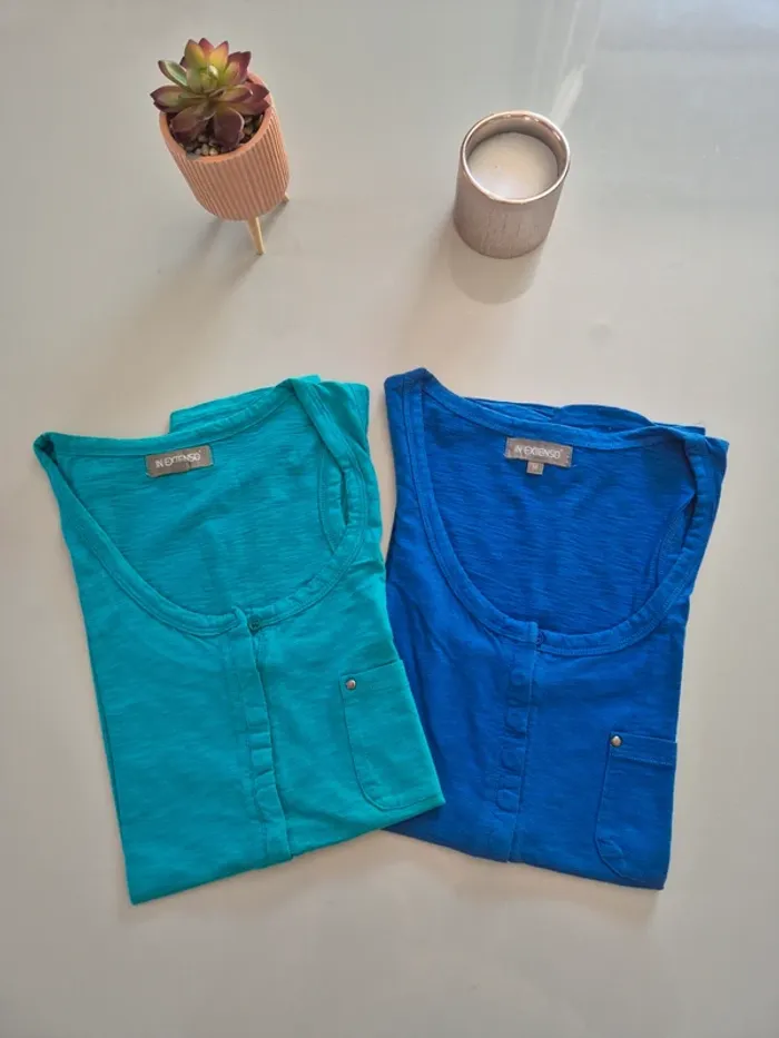 Lot de 2 débardeurs In extenso Taille M Un bleu et un vert Petit bouton non attachable pour un joli décolleté Poche poitrine En parfait état #virginie2220femme38