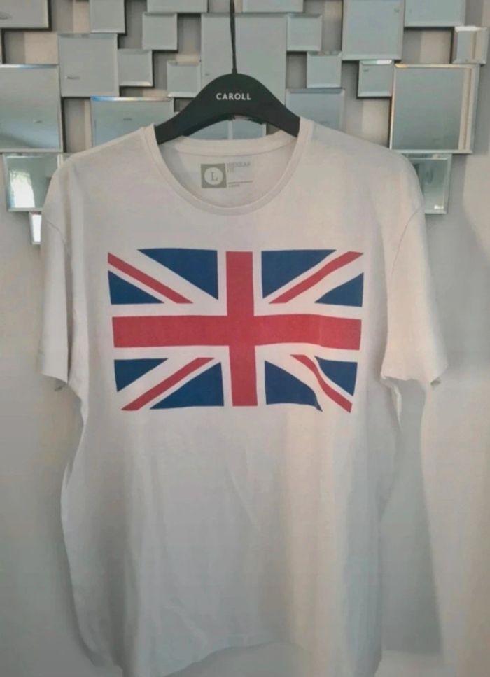 Tee-shirt homme Blanc imprimé drapeau anglais Taille L Il est en tres bon etat général mais 2 petites taches. Une dans le dos une sur la manche (voir photos) #virginie2220homme