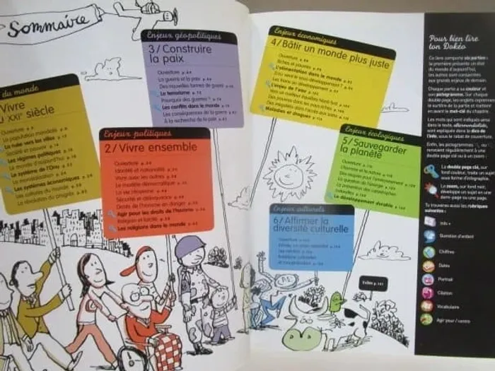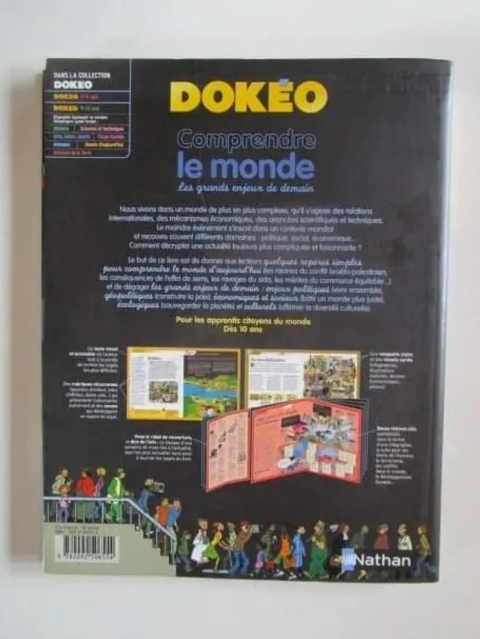 Nous vivons dans un monde de plus en plus complexe, qu'il s'agisse des relations internationales, des mécanismes économiques, des avancées scientifiques et techniques. Le moindre événement s'inscrit dans un contexte mondial et recouvre souvent différents domaines : politique, social, économique... Comment décrypter une actualité toujours plus compliquée et foisonnante ? Le but de ce livre est de donner aux lecteurs quelques repères simples pour comprendre le monde d'aujourd'hui (les racines du conflit israélo-palestinien, les conséquences de l'effet de serre, les ravages du sida, les mérites du commerce équitable...) et de dégager les grands enjeux de demain : enjeux politiques (vivre ensemble), géopolitiques (construire la paix), économiques et sociaux (bâtir un monde plus juste), écologiques (sauvegarder la planète) et culturels (affirmer la diversité culturelle). Éditeur ‏ : ‎ Nathan 143 pages Âge de lecture ‏ : ‎ 6 - 12 ans Dimensions ‏ : ‎ 21 x 1.2 x 27 cm Livre en très bon état Je vends d'autres livres de la collection Dokéo #phil_peg_dokéo Si plusieurs livres vous intéressent, n'hésitez pas à me contacter afin que je vous fasse un lot et ainsi profiter de réduction. #monde #enjeux