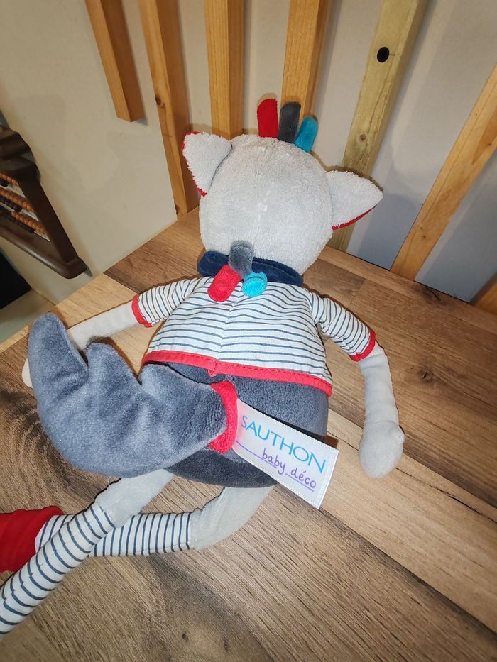 Doudou peluche loup Mister Bouh gris bleu noir rayé SAUTHON Tbe Étiquette marque présente 19.90 EUR Envoi en relais