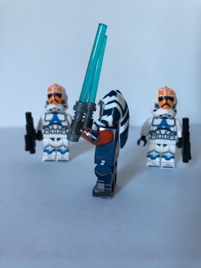 Figurine type lego Jedi Ashoka et 2 soldats de sa légion. Star Wars - photo numéro 1
