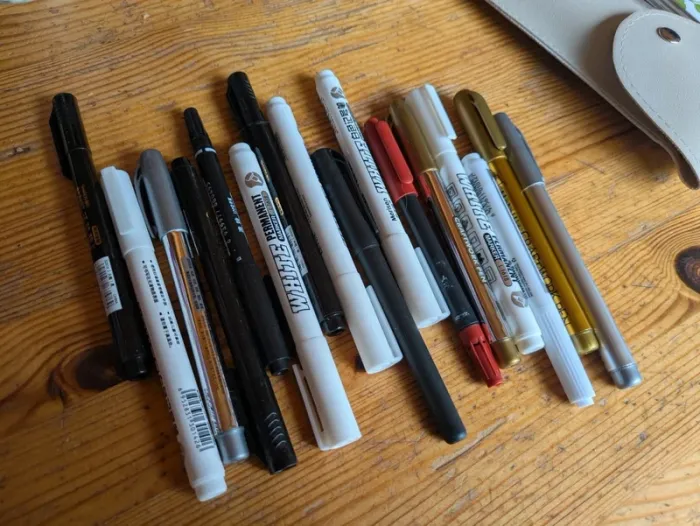 Lot stylo crayons feutres dorés argent blanc noir - photo numéro 2