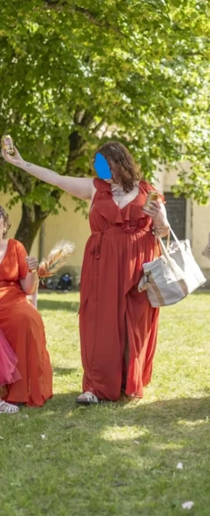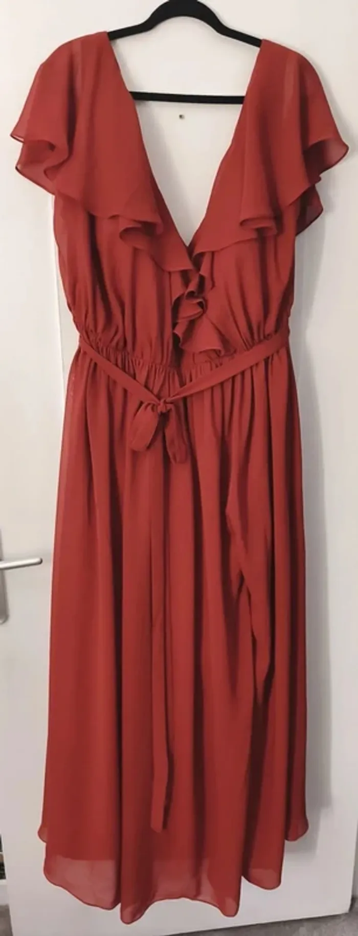 📦 Je ne fais pas d’envoi Vinted go car le relais est à 2h de chez moi, merci de votre compréhension 📦 Taille 8XL Portée une fois pour le mariage de ma sœur Couleur vermillon/terracotta Fendue devant, Décolleté en V devant et derrière Il y a des coques à la poitrine Taille 56EU Acheté 126€ chez JJ's House Mensurations indiquées par la marque : - poitrine : 130 cm - taille : 115 cm - hanches : 136 cm - longueur : 155 cm