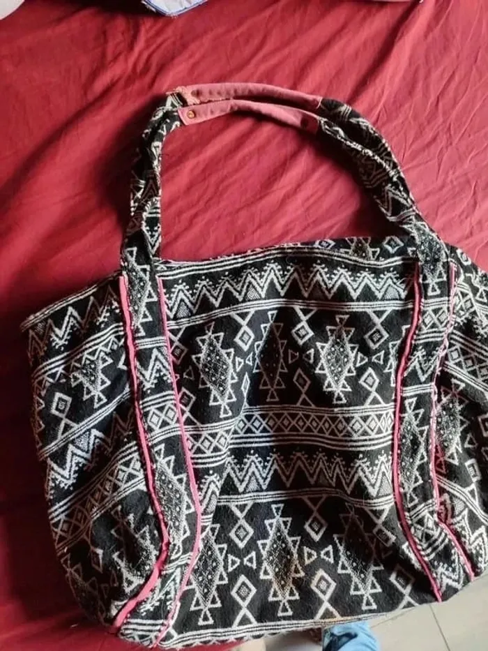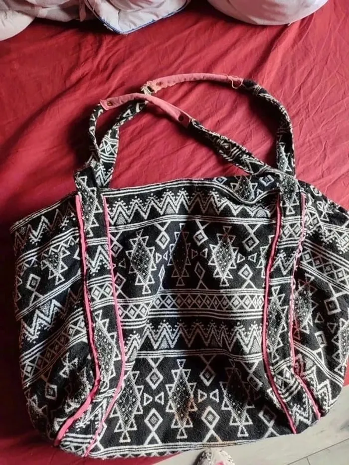 Sac noir blanc et rose bon état motif aztèque - photo numéro 1