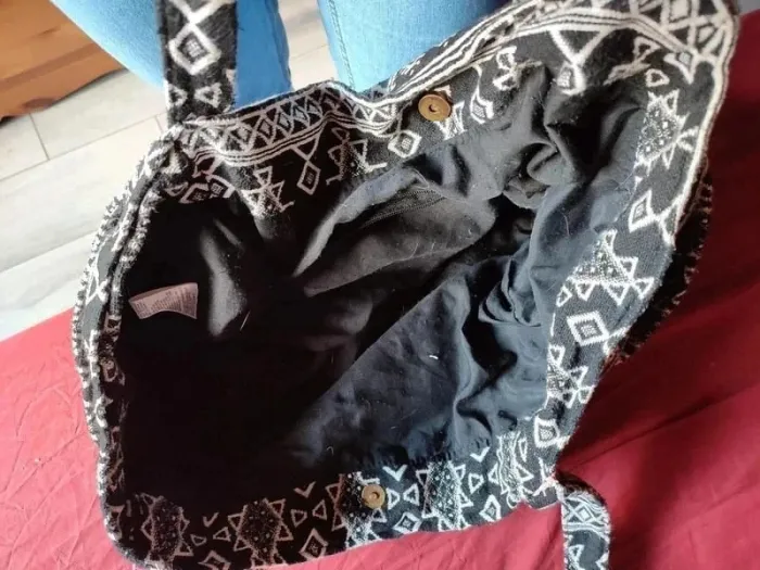 Sac noir blanc et rose bon état motif aztèque - photo numéro 2