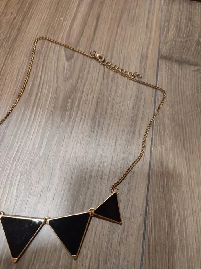 Collier triangle noir et doré - photo numéro 1