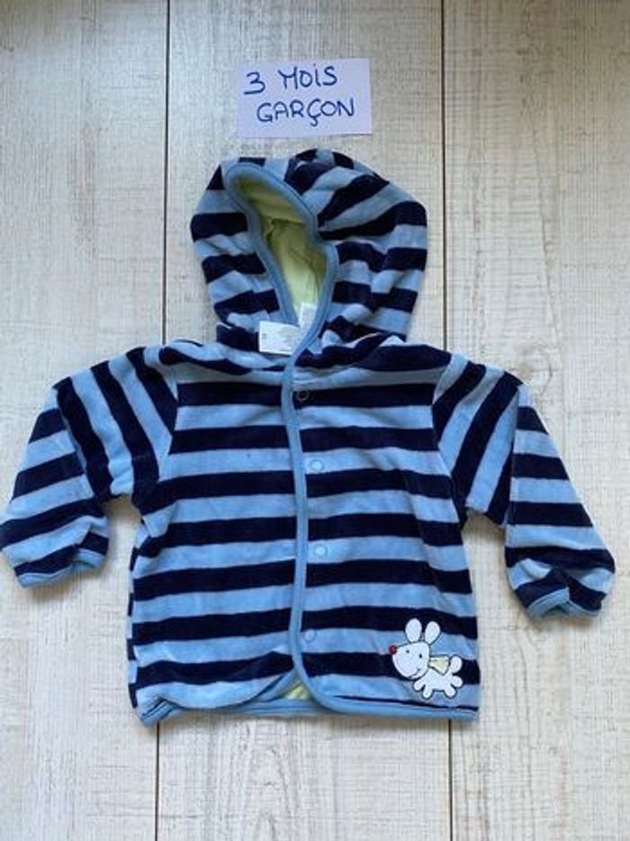 Gilet à manches longues à capuche Motif : rayures, lapin Matière : velours Âge : 3 mois / 62 cm Utilisation : pressions devant Marque : Baby Club #tiffanie4439_3mois