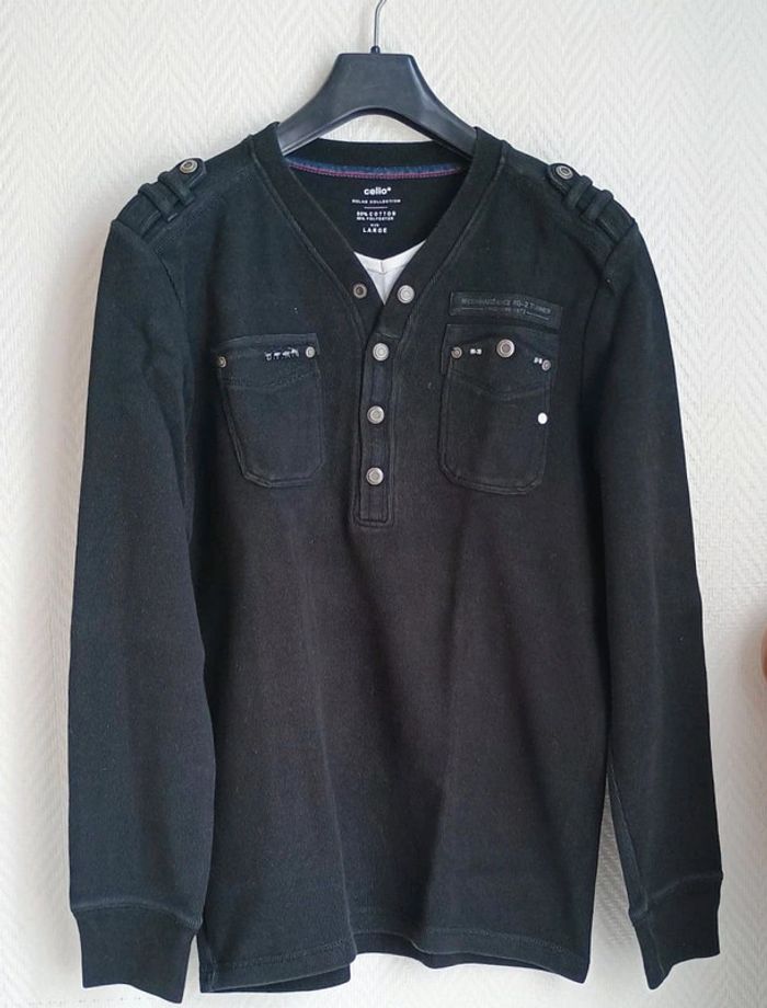 Pull haut pour homme taille L marque célio couleur noir Longueur 76 cm Aisselle à Aisselle 56 Manches 69 cm