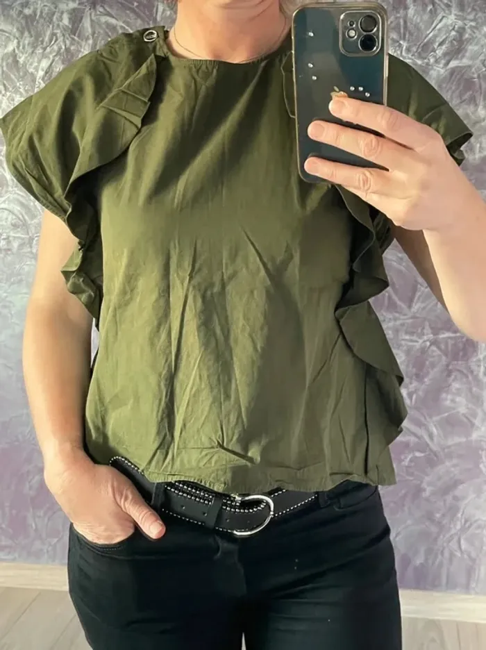 Superbe blouse silhouette au top kaki Zara - photo numéro 1