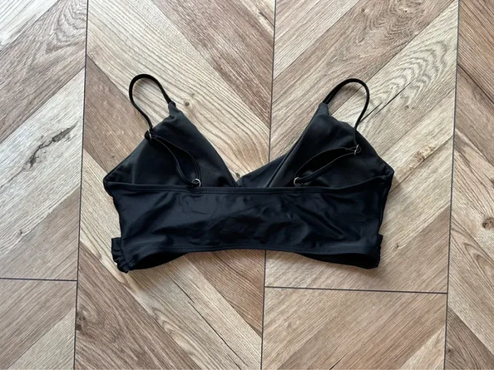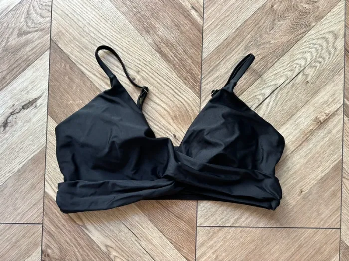 Haut de maillot de bain noir croisé - Très bon état, Taille M Haut de maillot de bain noir, en très bon état. Son design original avec un décolleté croisé à l'avant le rend à la fois chic et moderne. Les bretelles sont fines et ajustables pour un ajustement parfait. Ce haut possède des coussinets amovibles, ce qui est très pratique pour ajuster le rendu selon vos préférences. C'est un basique élégant pour vos journées à la plage ou à la piscine. * Couleur : Noir * Taille : M * État : Très bon état (porté quelques fois) * Marque : Sans marque * Détails : Coussinets amovibles N'hésitez pas à me contacter si vous avez des questions ! #maillotdebain #bikini #hautdemaillot #noir #croisé #plage #piscine #été #vacances #tailleM #fashion #moderne
