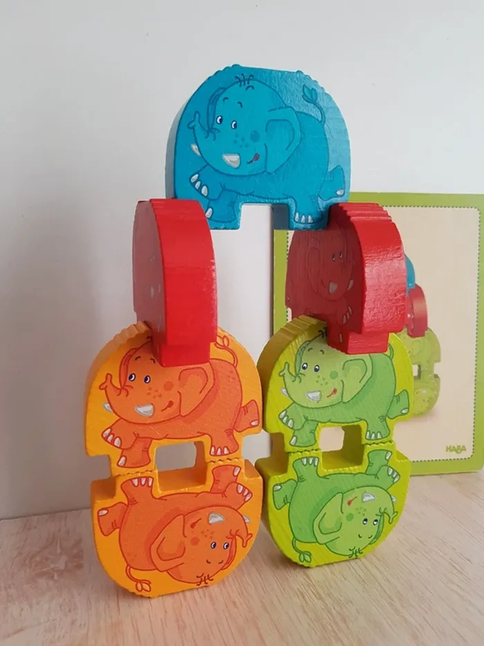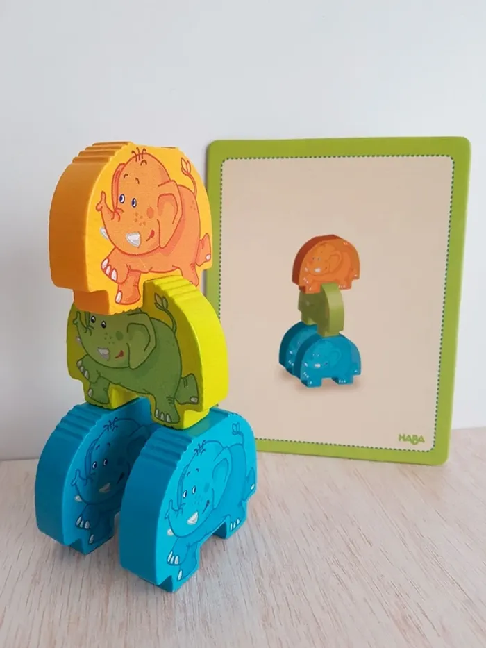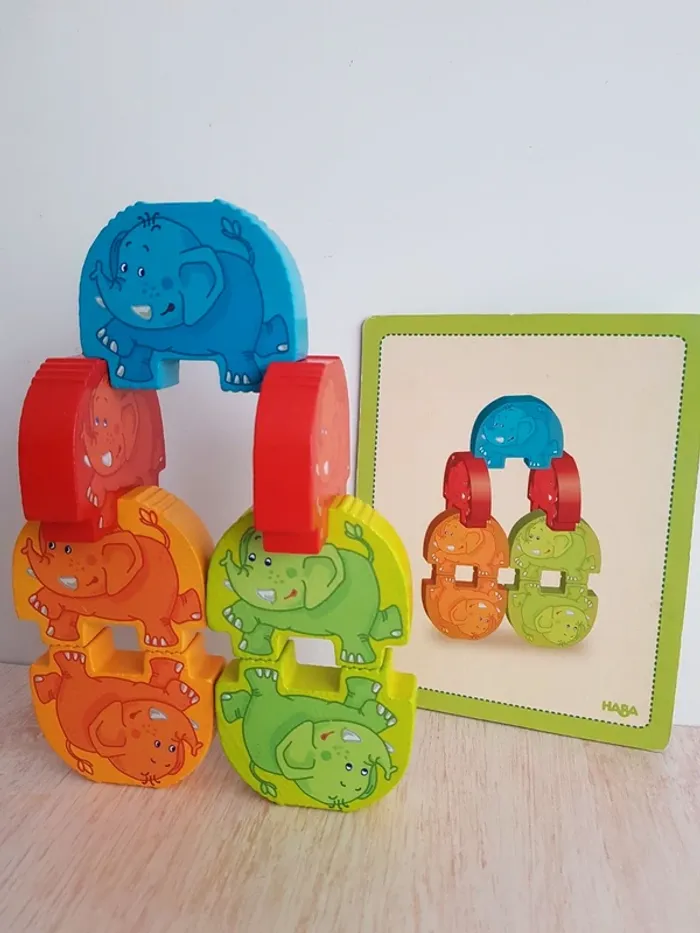Éléphants cascadeurs jeu de classement en bois Haba - photo numéro 1