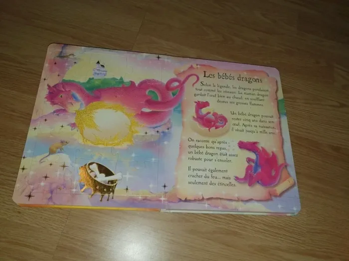 Livre puzzle en bon état. 6 puzzles de dragon à l'intérieur, chacun associé à une histoire. Quelques petites traces d'usure mais reste en bon état. Complet #livres_labeille226