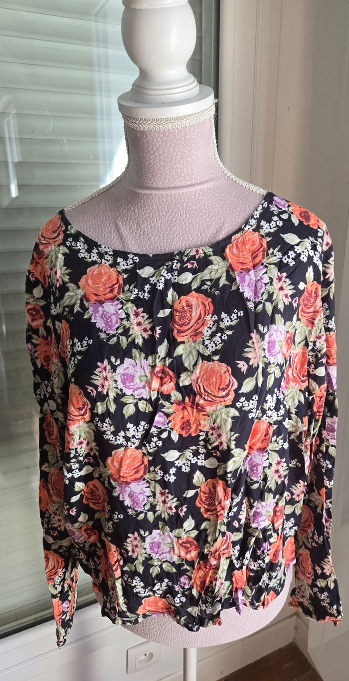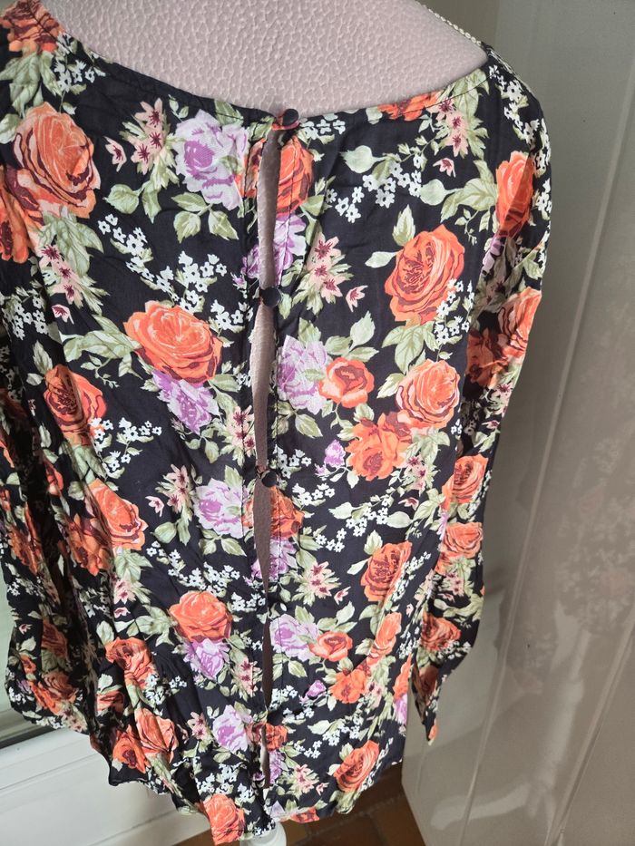#44femme_tatianaalena Jolie blouse fleuries 🌸 Marque ◼️: H&M Taille 📏 : Taille 44 État 🏷️: Tres bon etat Couleur 🎨 : Noir/ multicolore