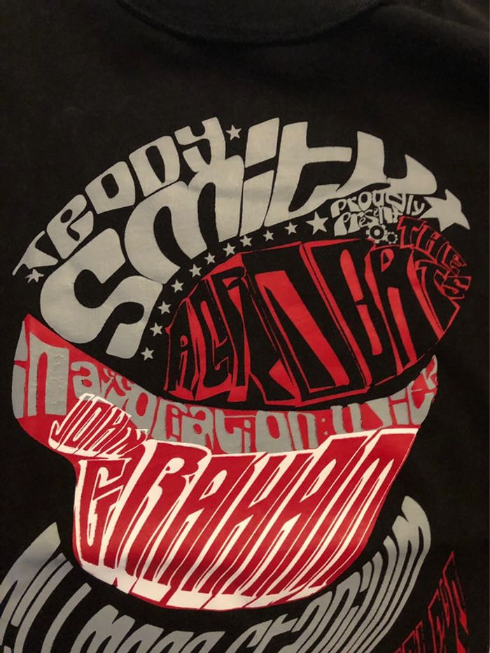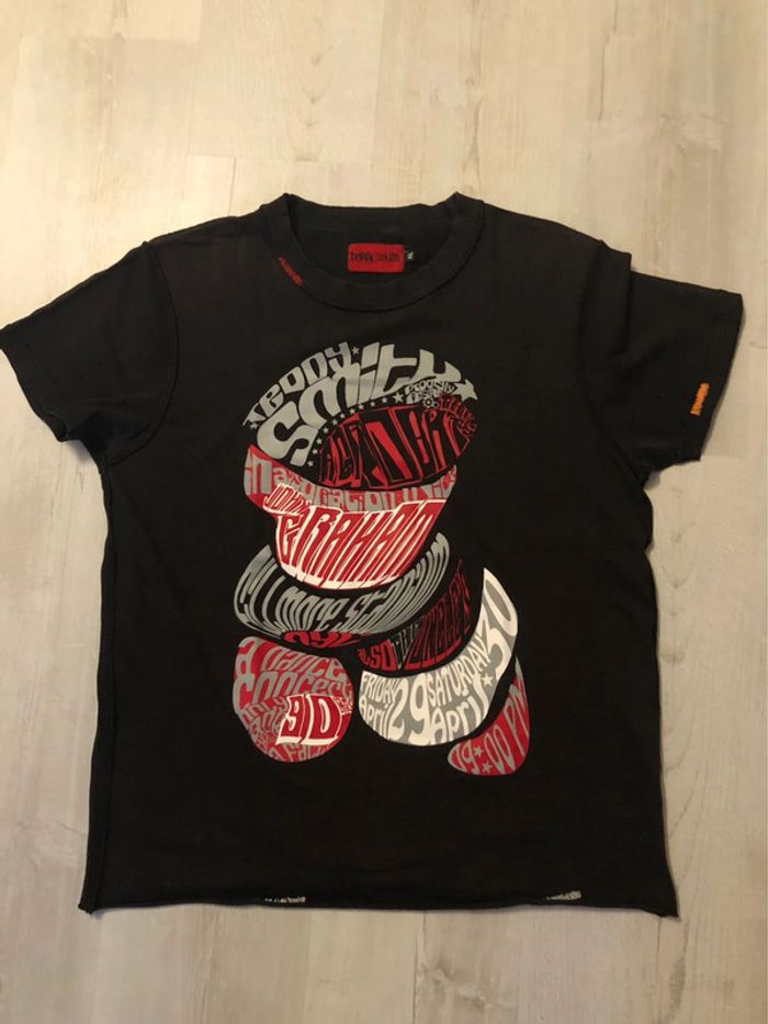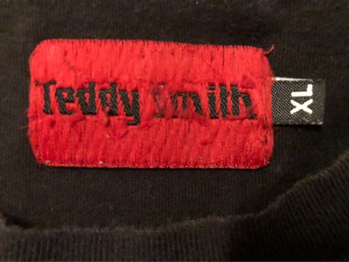 Bonjour #videdressing85vêthommeXL42 Très bon état, flockage intact T XL Tee-shirt fantaisie Fond noir et flockage sur le devant Coutures fantaisie bas, manches, col Manches courtes Col en rond Marque: TEDDY SMITH Cdt