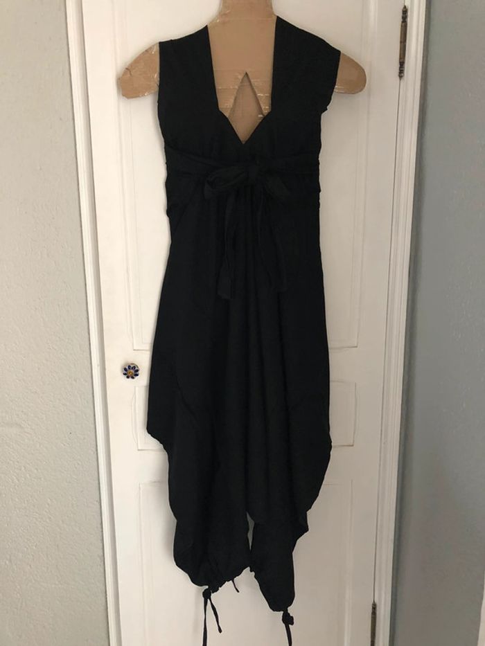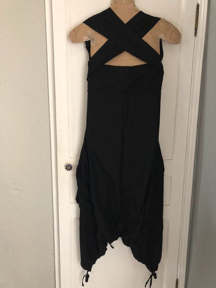 Bonjour #videdressing85rienqueduneuf #videdressing85vintage #videdressing85vêtfemmeTunique NEUVE avec notice explicative T unique 40/46 Dimensions sur la dernière photo Combinaison PANJAHBI Coloris noir uni Cette combinaison peut se mettre de plusieurs façons différentes selon vos envies, aussi bien le haut, que le bas (notice sur les photos) En coton Forme ample Lien de serrage en bas des jambes Grand bandeau poitrine Grande longueur de bretelles/ceinture J’ai la même en blanc avec des rayures argentées, neuve aussi. Cdt