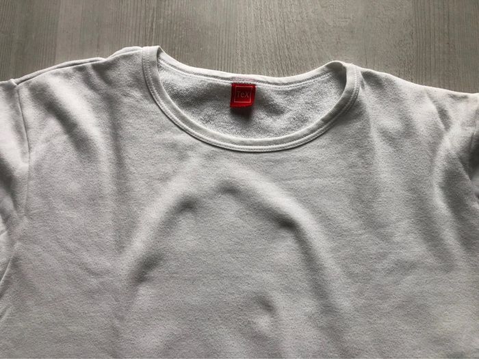 Bonjour #videdressing85rienqueduneuf #videdressing85vêtfemme3XL46 #videdressing85vêtfemme3XL4XL4648 #videdressing85vêtfemme4XL48 NEUF, lavé pour la vente T46-48 Sweat-shirt blanc 100% coton Intérieur bouclettes anti transpirent Encolure ronde forme droite Ouverture sur les côtés en bas Marque: TEX Cdt