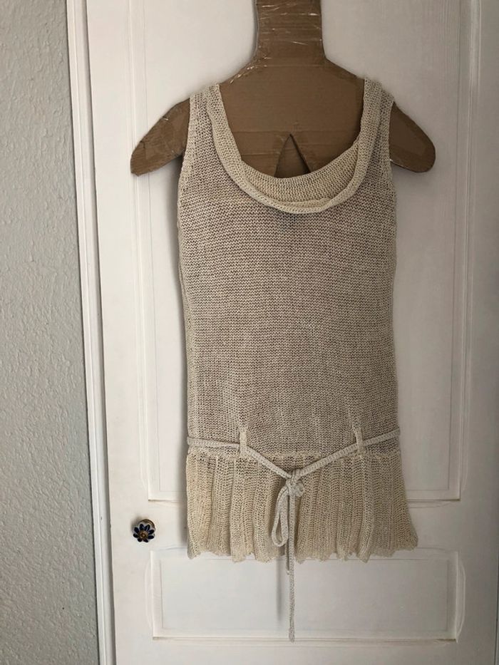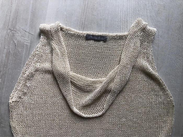 Bonjour #videdressing85vêtfemmeL40 #videdressing85vêtfemmeLXL4042 #videdressing85vêtfemmeXL42 #videdressing85vintage Très bon état Article vintage (annees 85-90) T 40-42, extensible Blouse/tunique écrue Sans manches Encolure en rond Ceinture à la taille Cdt