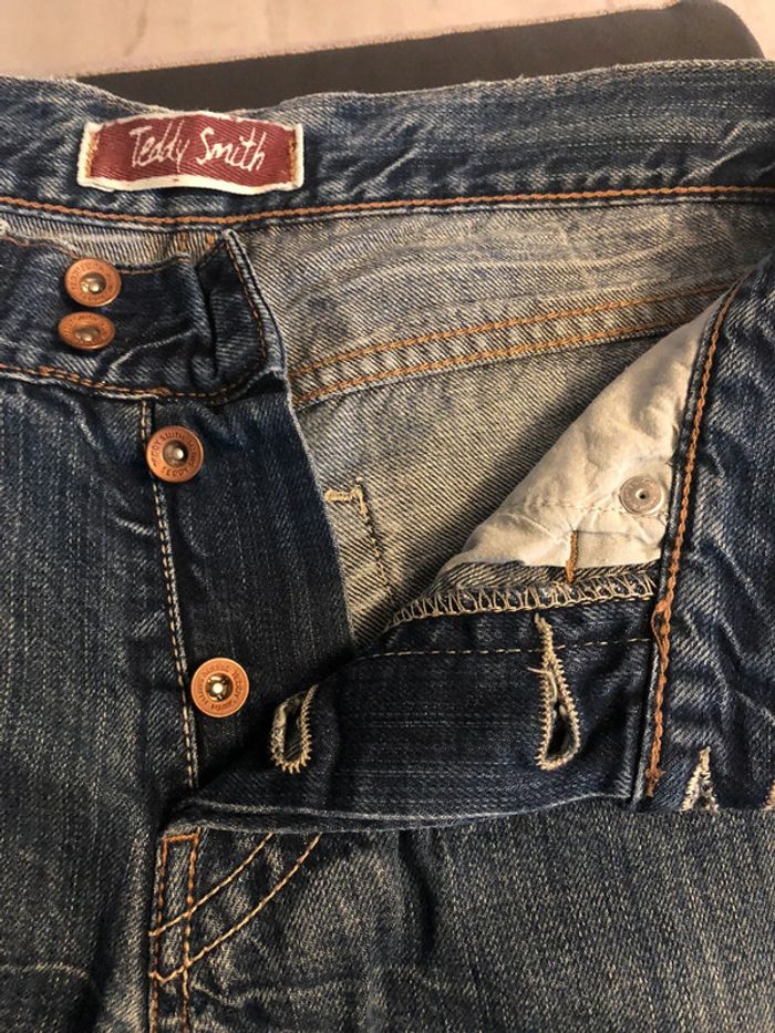 Bonjour #videdressing85vêthommeM38 # videdressing85vêthommeL40 État neuf, porté 2 fois T 30 (38-40) Marque: TEDDY SMITH Short en jean fantaisie 5 poches Passants ceinture Fermeture par boutons métalliques Revers non cousu en bas Cdt
