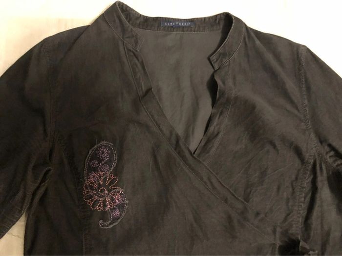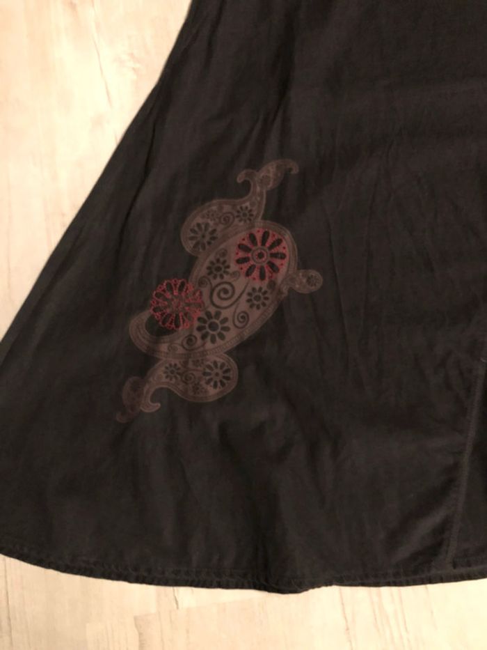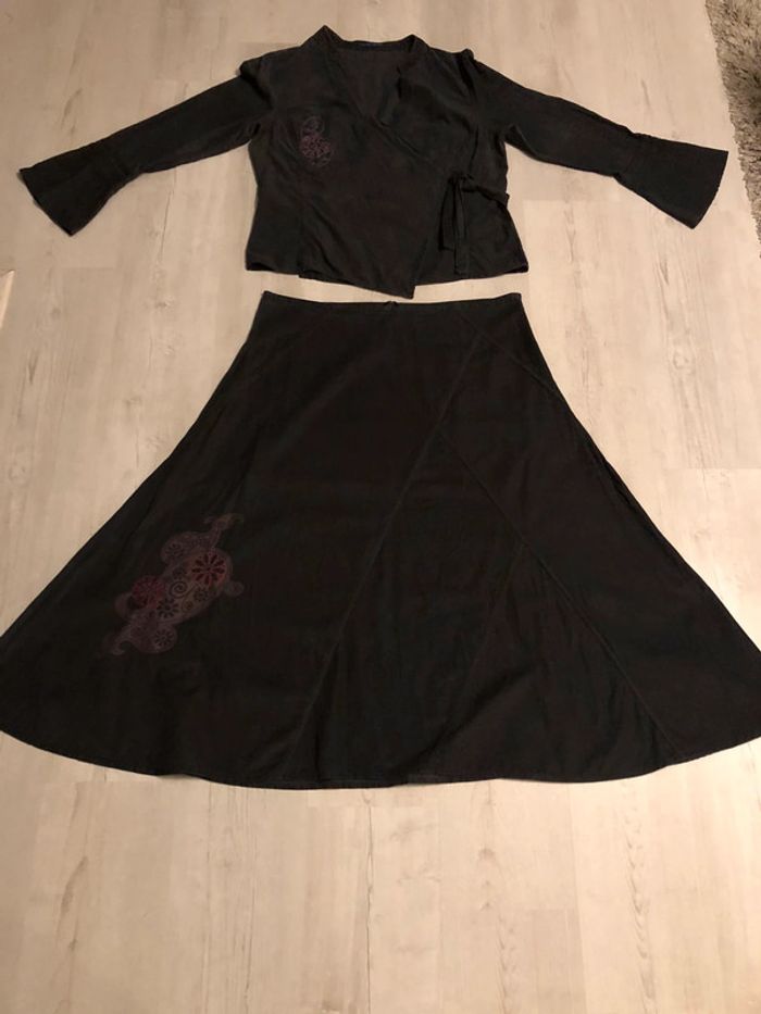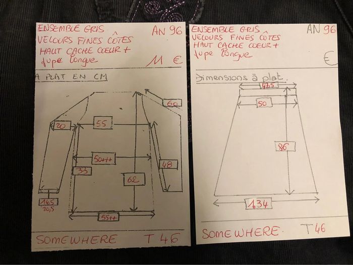 Bonjour #videdressing85vêtfemme3XL46 Jupe: très bon état Cache cœur: quelques traces de pliures sous les aisselles, aux manches Dimensions sur la dernière photo T 46 Ensemble jupe longue large et cache-cœur gris anthracite 100% coton, fines côtes velours JUPE: Longue aux chevilles suivant votre taille Forme patineuse Différentes coutures fantaisies Broderies ethniques sur un côté Zip sur le coté CACHE-COEUR: Manches longues évasées avec galons Encolure ronde finissant en V Broderies sur un coté Lacet intérieur Fermeture par 2 ceintures pour le noeuds Galons au dos —Traces de pliures sur les manches— Cdlt