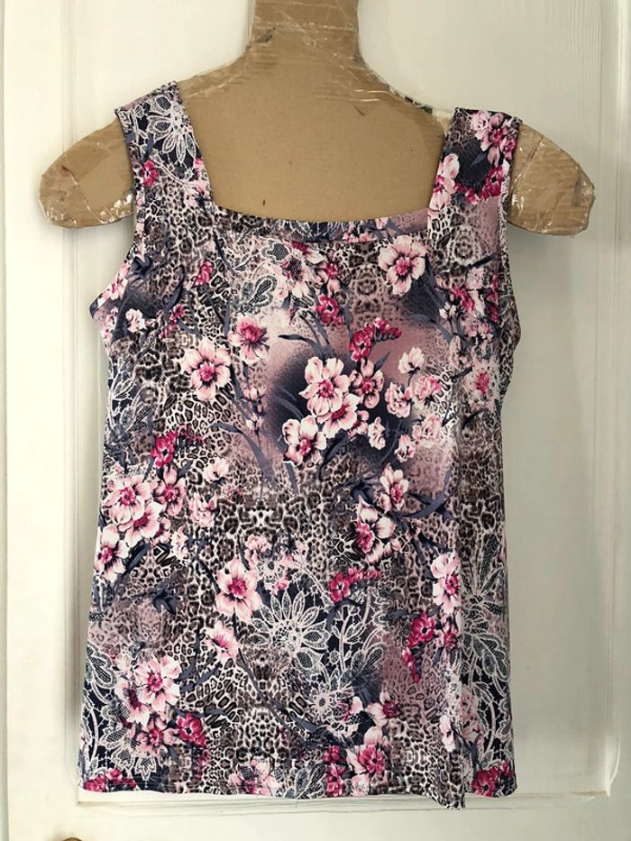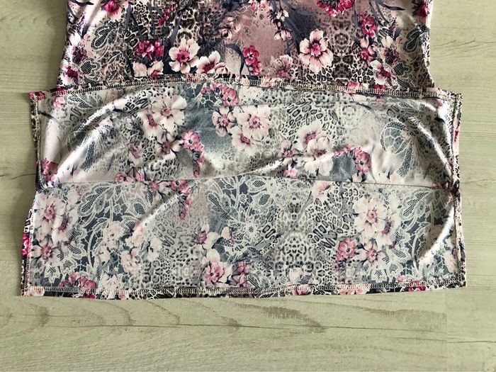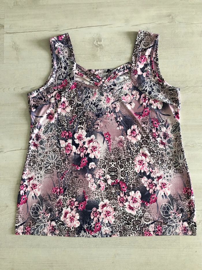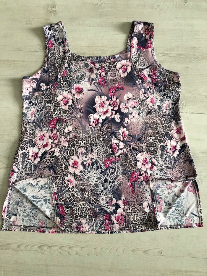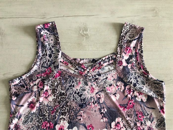 Bonjour #videdressing85rienqueduneuf #videdresing85vêtfemmeXL42 #videdressig85vêtfemmeXLXXL4244 #videdressing85vêtfemmeXXL44 NEUVE T42/44 très extensible Dimensions sur la dernière photo Blouse débardeur fleurie ton rose NON transparent Encolure carrée devant avec lacets fantaisies tressés Encolure droite derrière Bretelles larges 2 fentes sur les côtés Achetée dans un boutique indépendante donc, sans marque 95% viscose 5% élasthane Cdlt